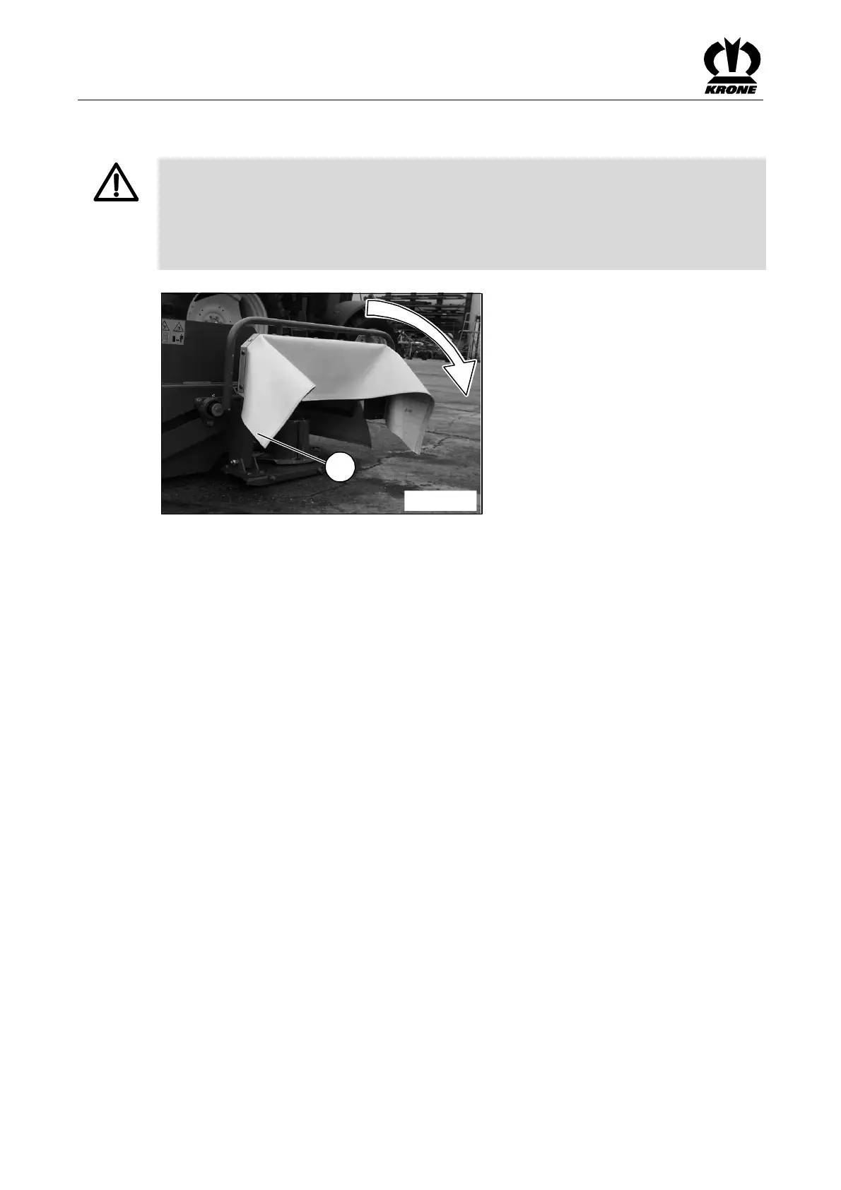 Fold down the protective devices (1) (guard cloths) on the left and right side before operation.
