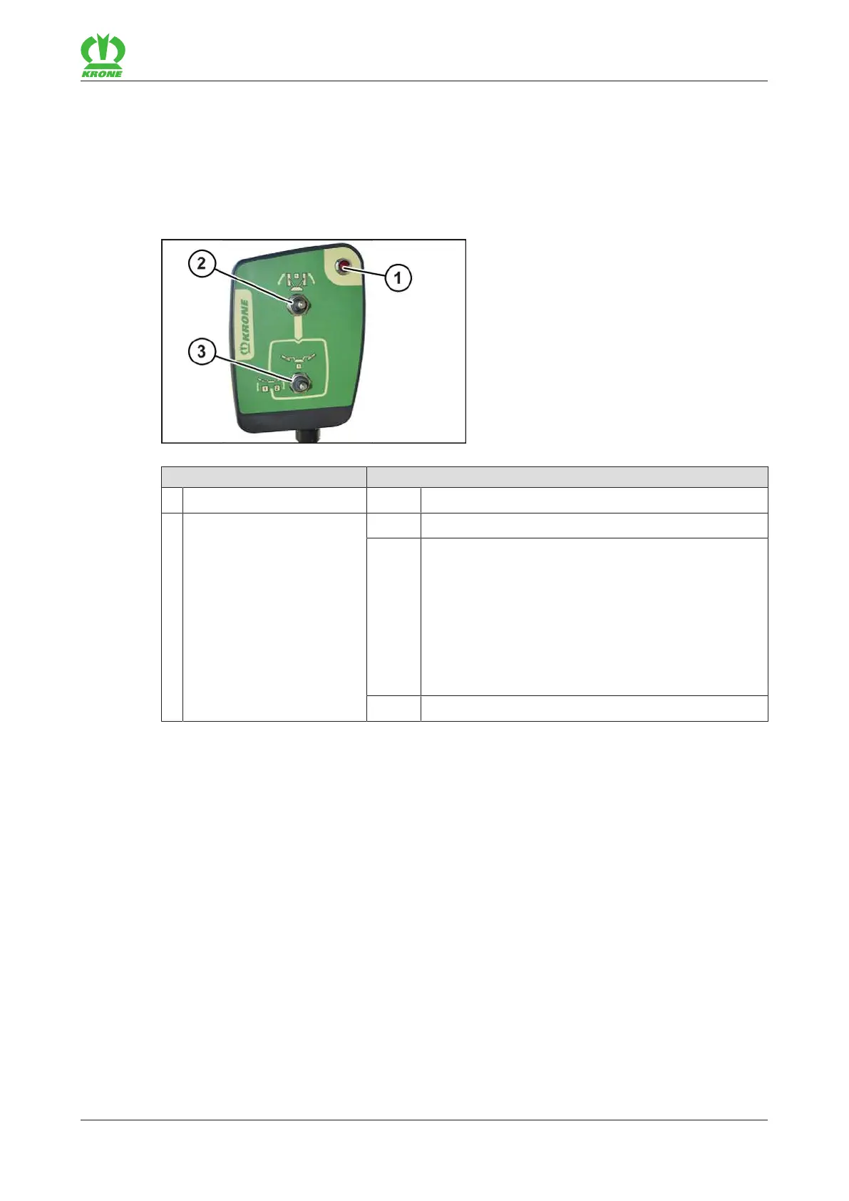 are executed via the control units of the tractor. The following table explains the function of the
