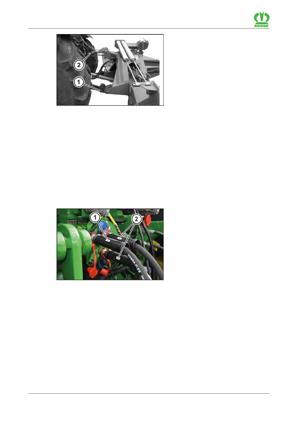 In order to connect the hydraulic hoses properly, the hydraulic hoses (1, 2) are marked with