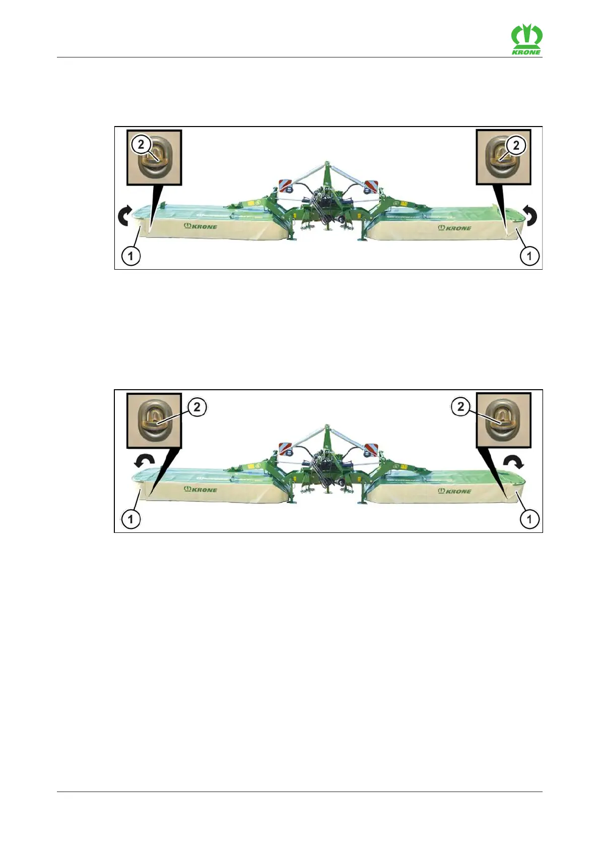 Ensure that the side guard(1) is secured by the locking, refer to page63.