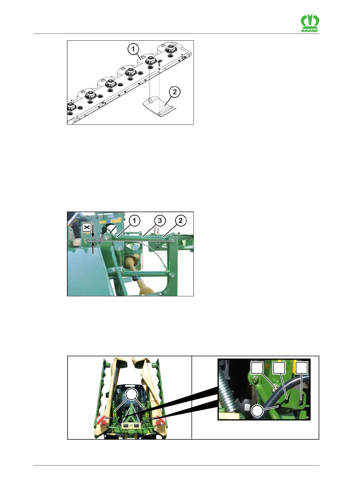 For mowing set the height of the three-point hitch until the side links (3) in the front area(1) and