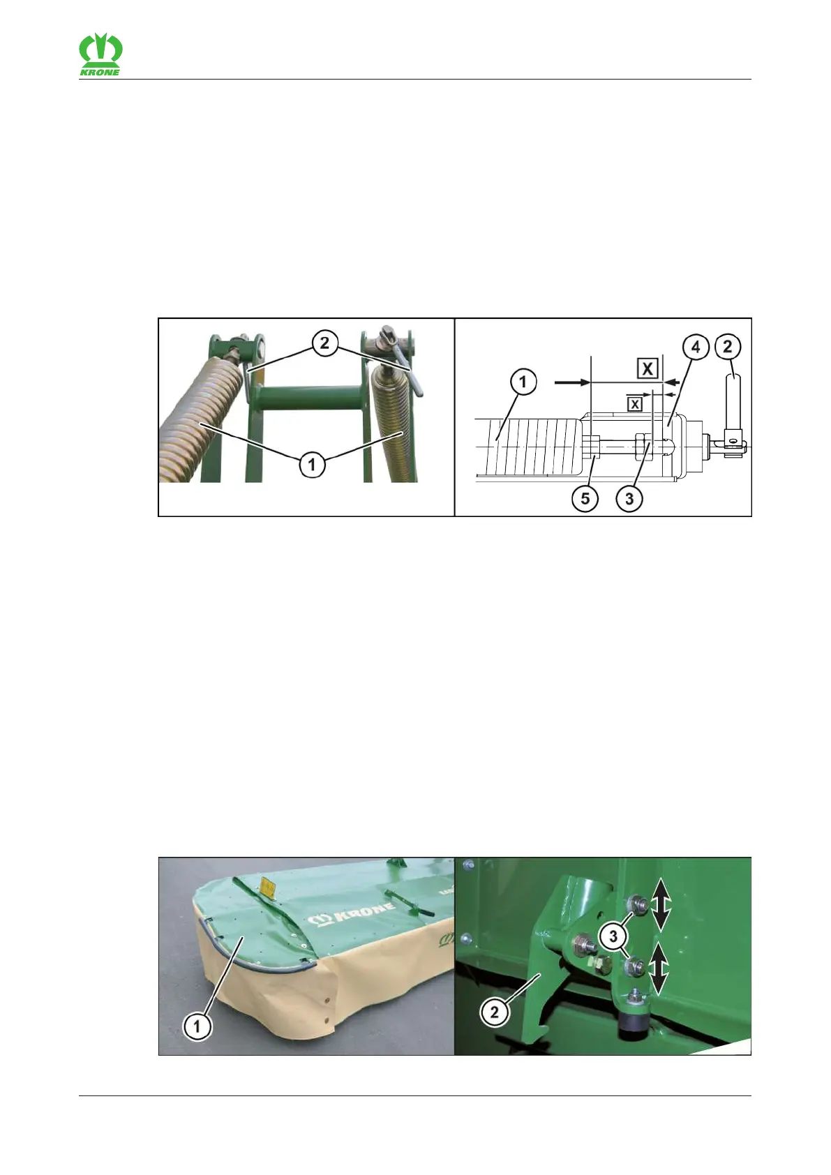 The relief springs (1) are used to adapt the ground pressure of the cutterbar to the local