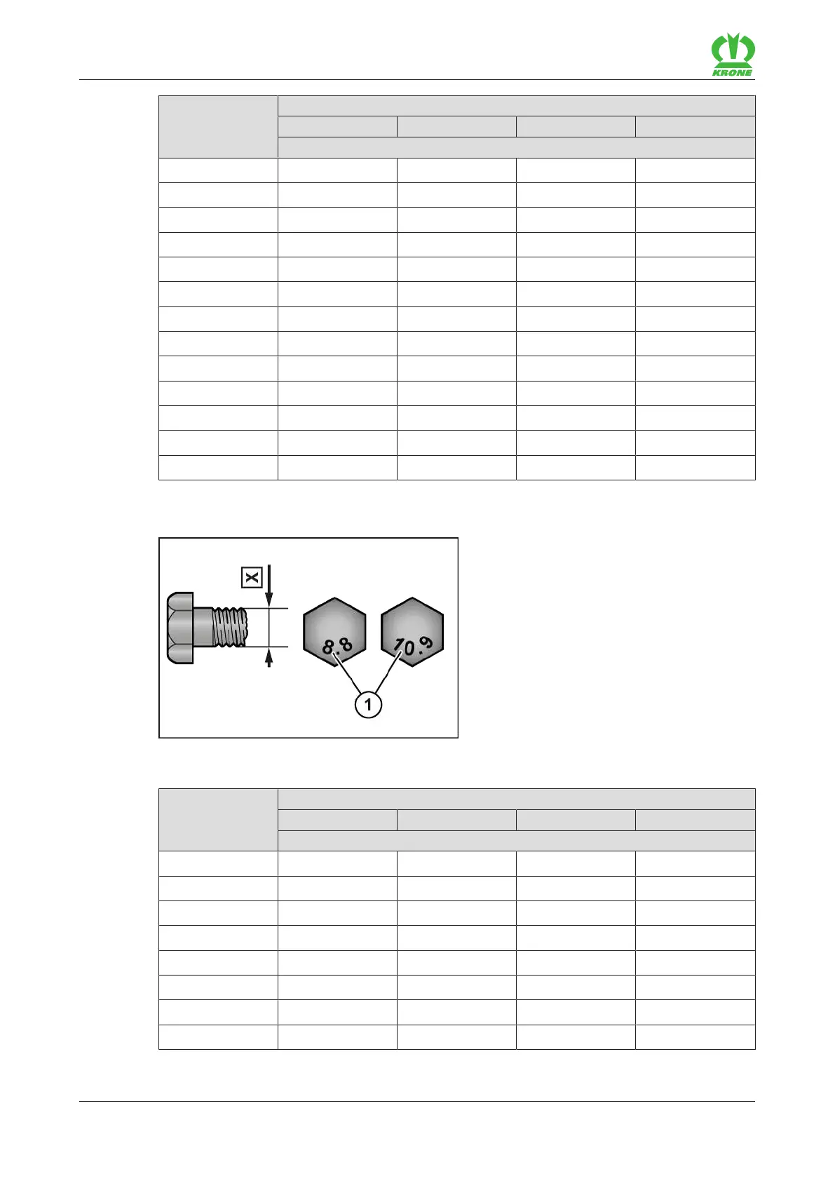 X Thread size 1 Strength class on screw head
