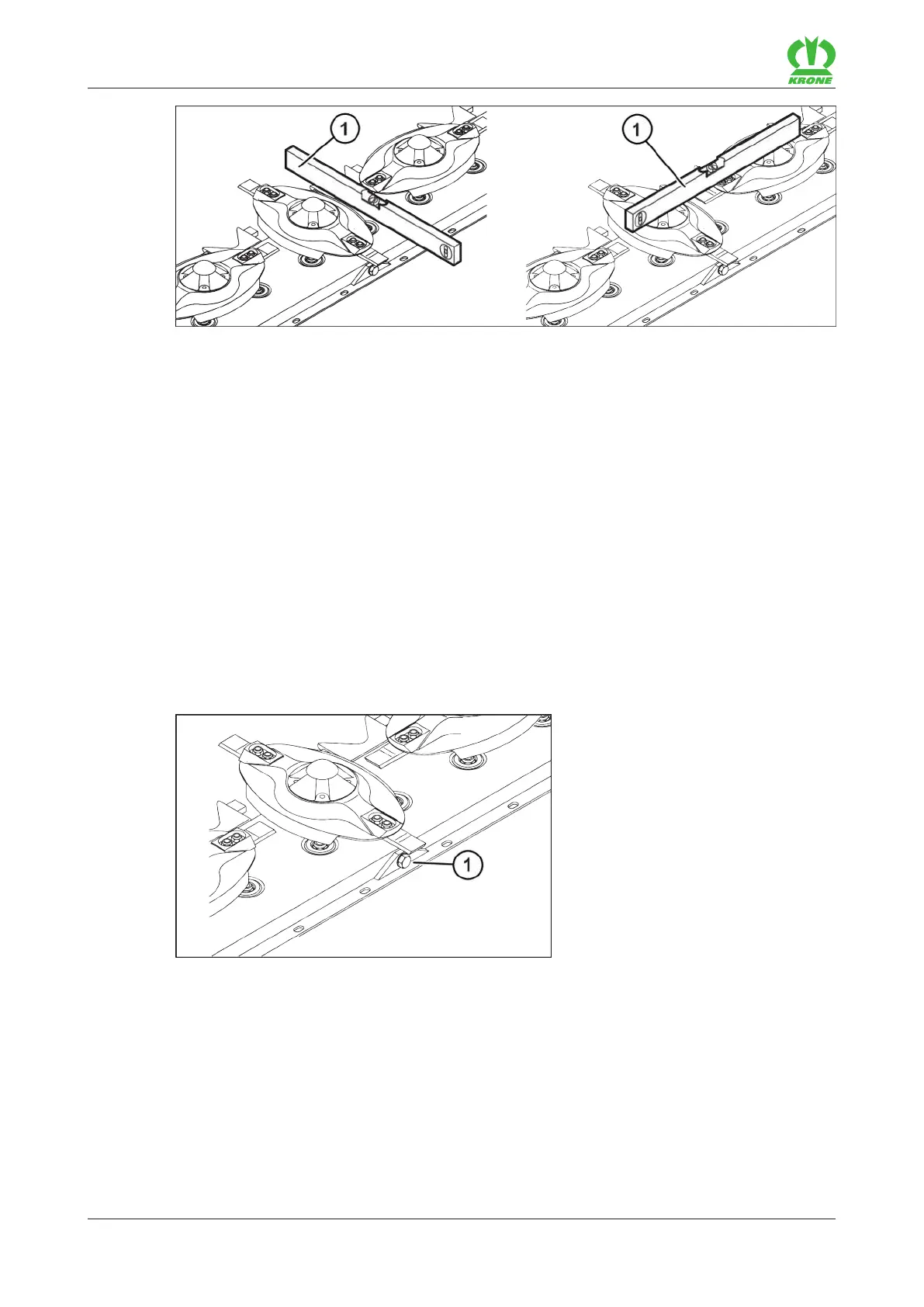 Align the cutterbar using the spirit level (1) and readjust, if necessary, via cutting height