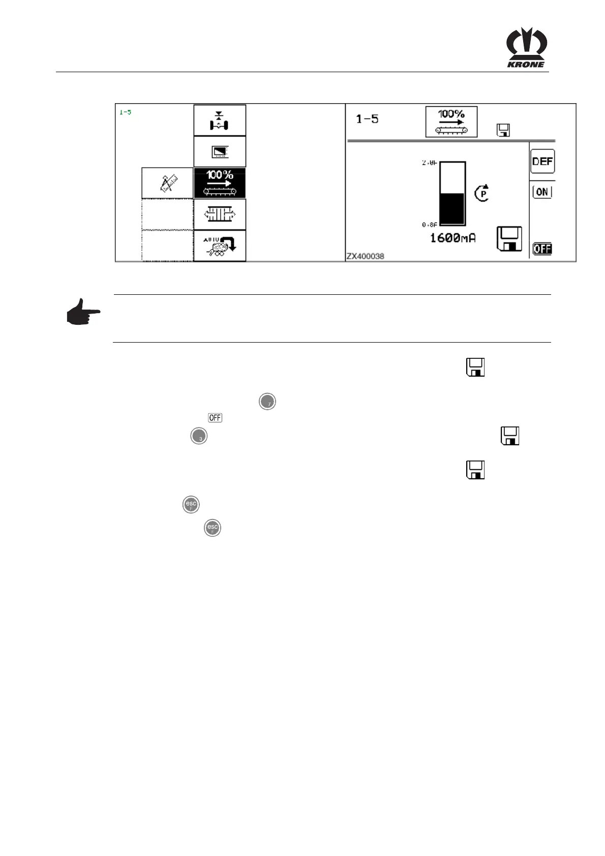 • Press the key for softkey to deactivate the floor conveyor. The icon is shown in