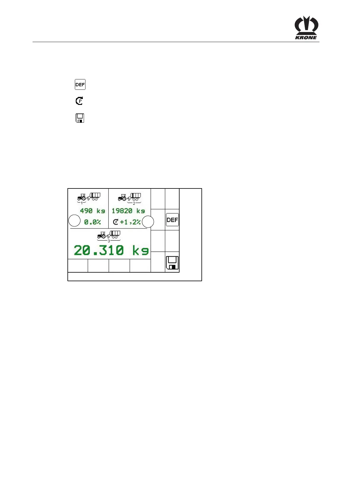 The axle load (2) sets the value which weighs on the axles (see Fig. above).