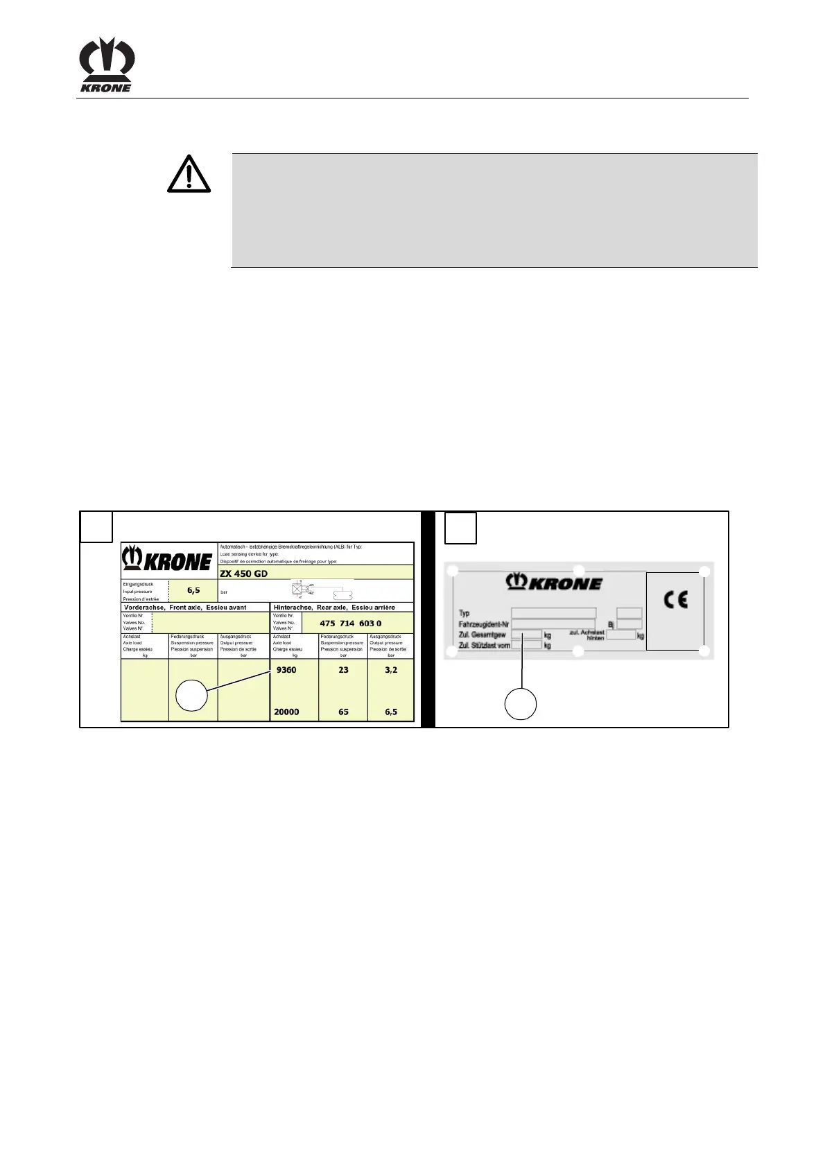 • Information about total permissible weight (1) may be found on the type plate (II) (see
