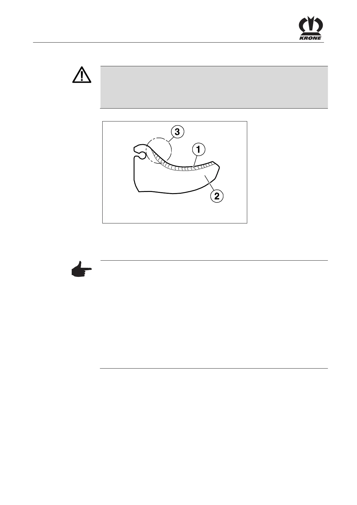 • If at all possible, use the KRONE grinding mechanism for grinding. The