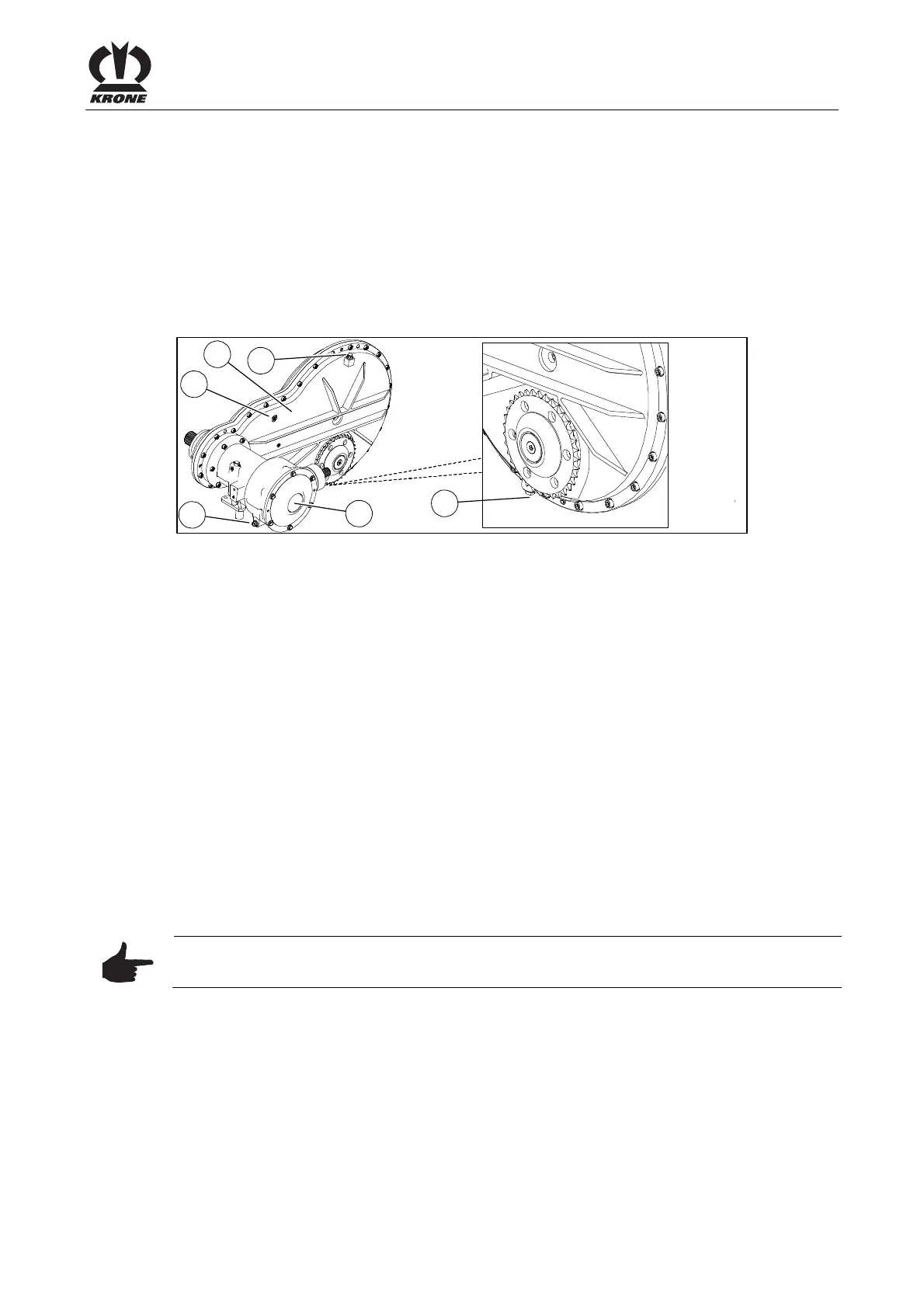Pos: 31.29.7.2 /BA /Wartung/Öl kontrolle_Wech sel/Ladewag en/Fördertrom mel 100 h @ 38\ mod_12670894 06134_78.d oc @ 354803