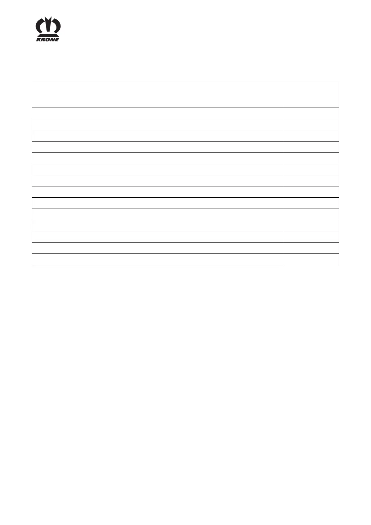 The following table contains a list of lubrication points on the machine and the number of