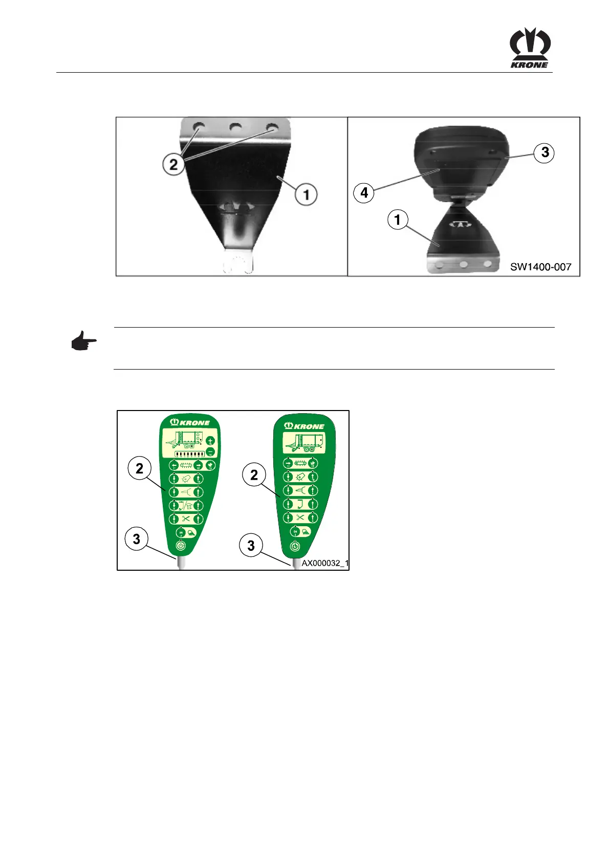 Install the control unit with the support (1) in that way, that the control unit can be operated from
