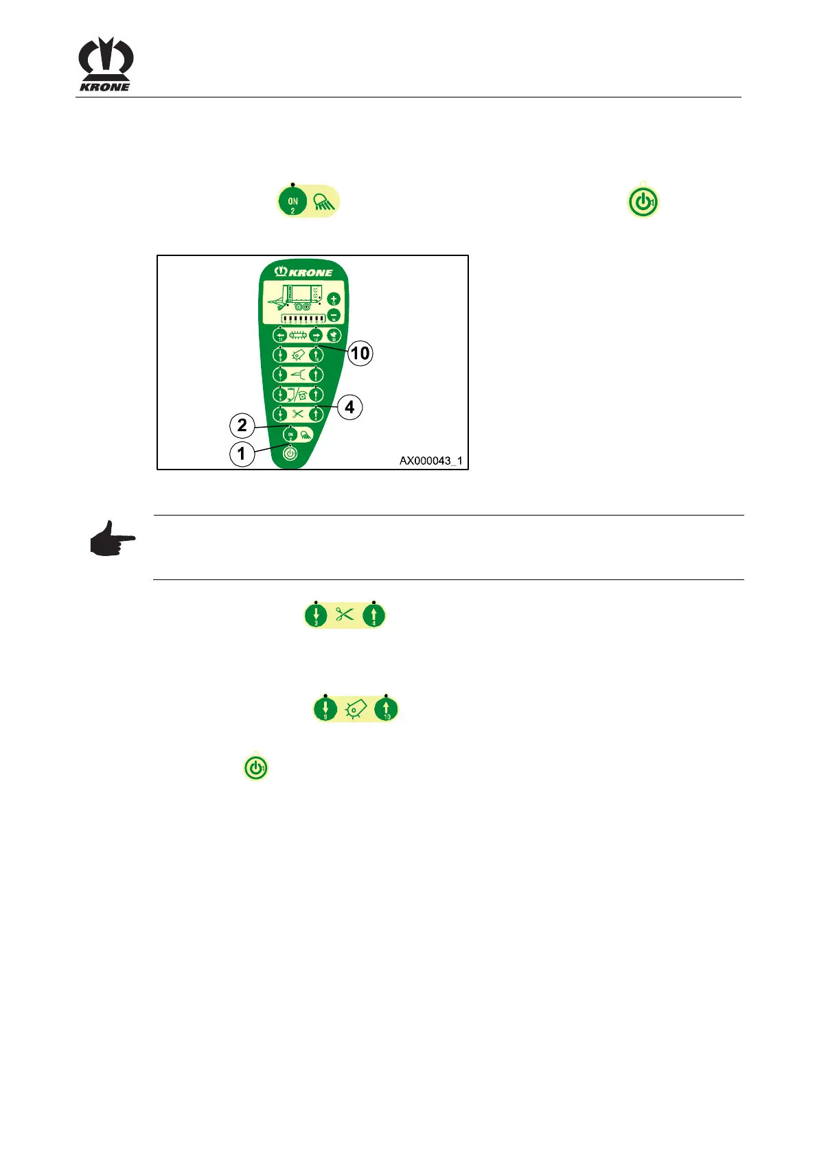 • Increase the engine speed of the tractor to nominal speed.