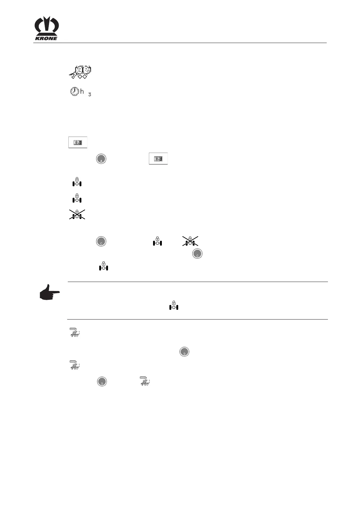 Locking/releasing the coaster/steering axle. The active status is displayed.