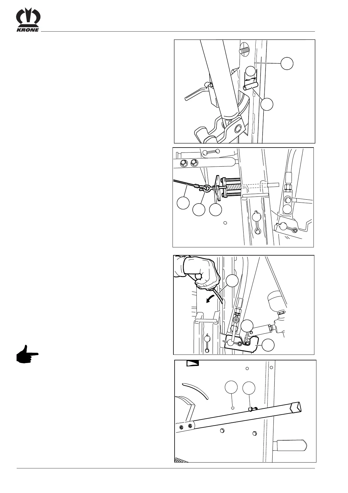 cable (1). To adjust, loosen the nuts (3), keep hold of the