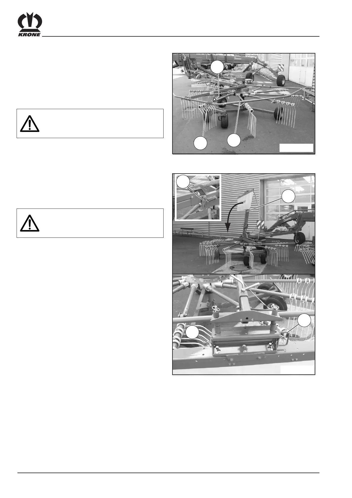 • Swivel the side hoop guards (1) on the rear right of