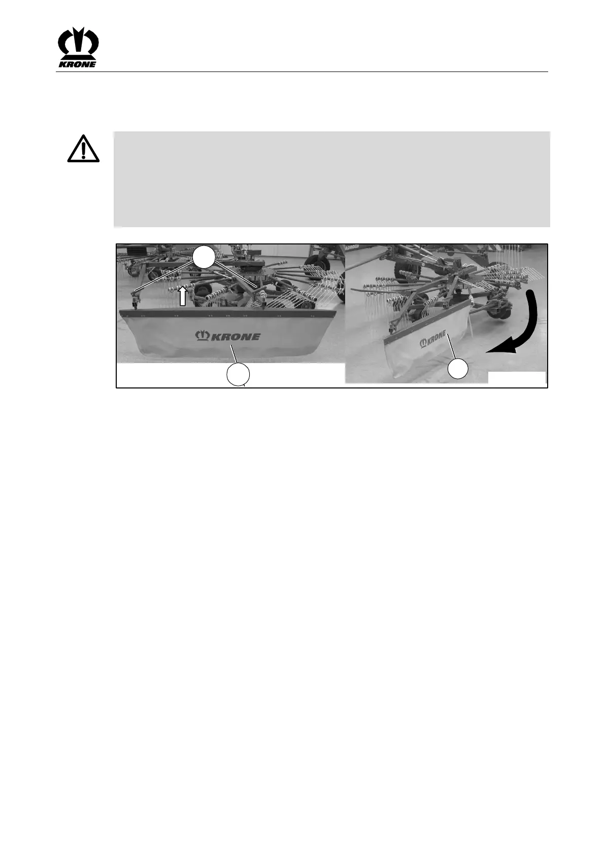 • Swivel the swath cloth into transport position with the double-action control unit.