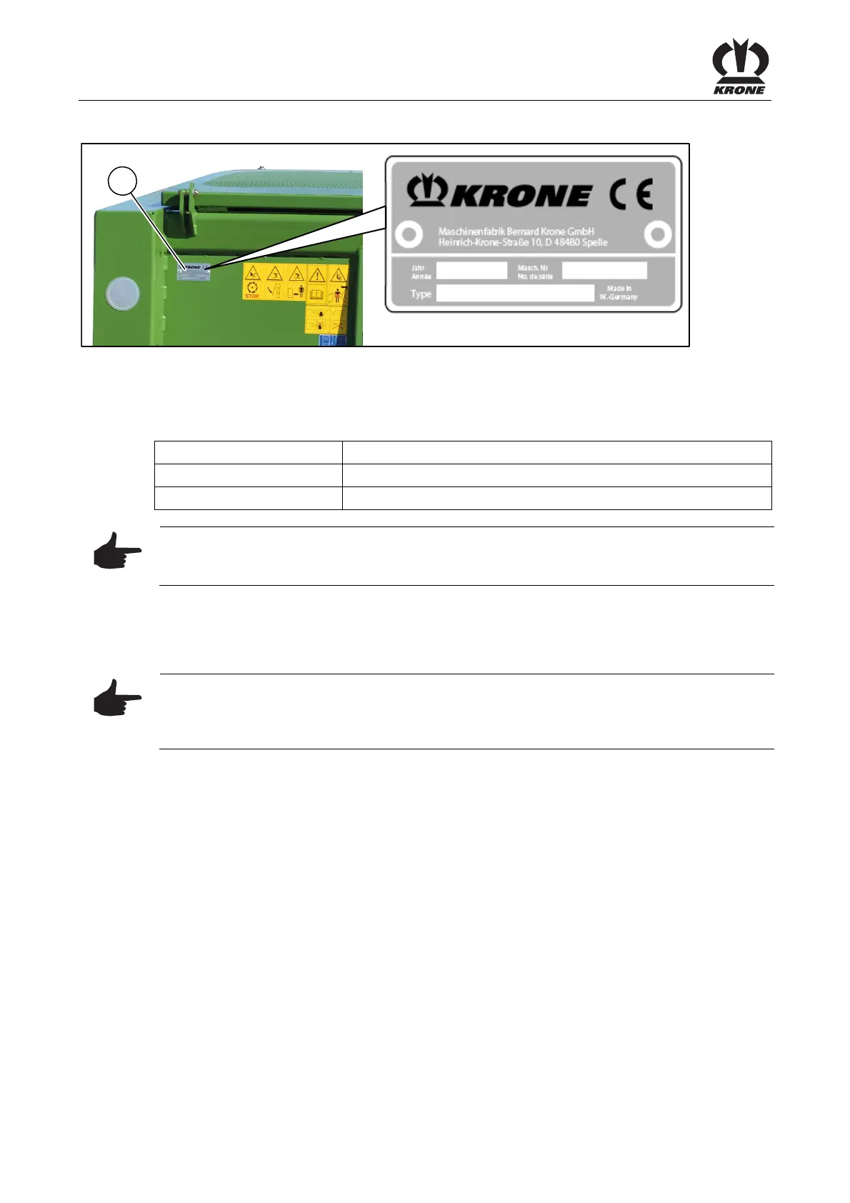 designation, machine number and the year of manufacture of the relevant machine: To ensure