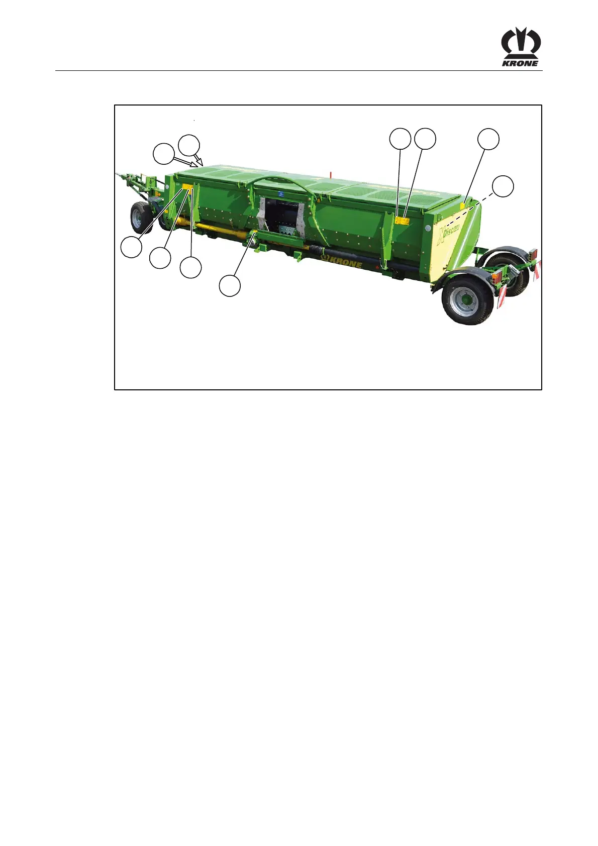 Krone X-Disc 620 - Position of the Adhesive Safety Stickers on the Machine