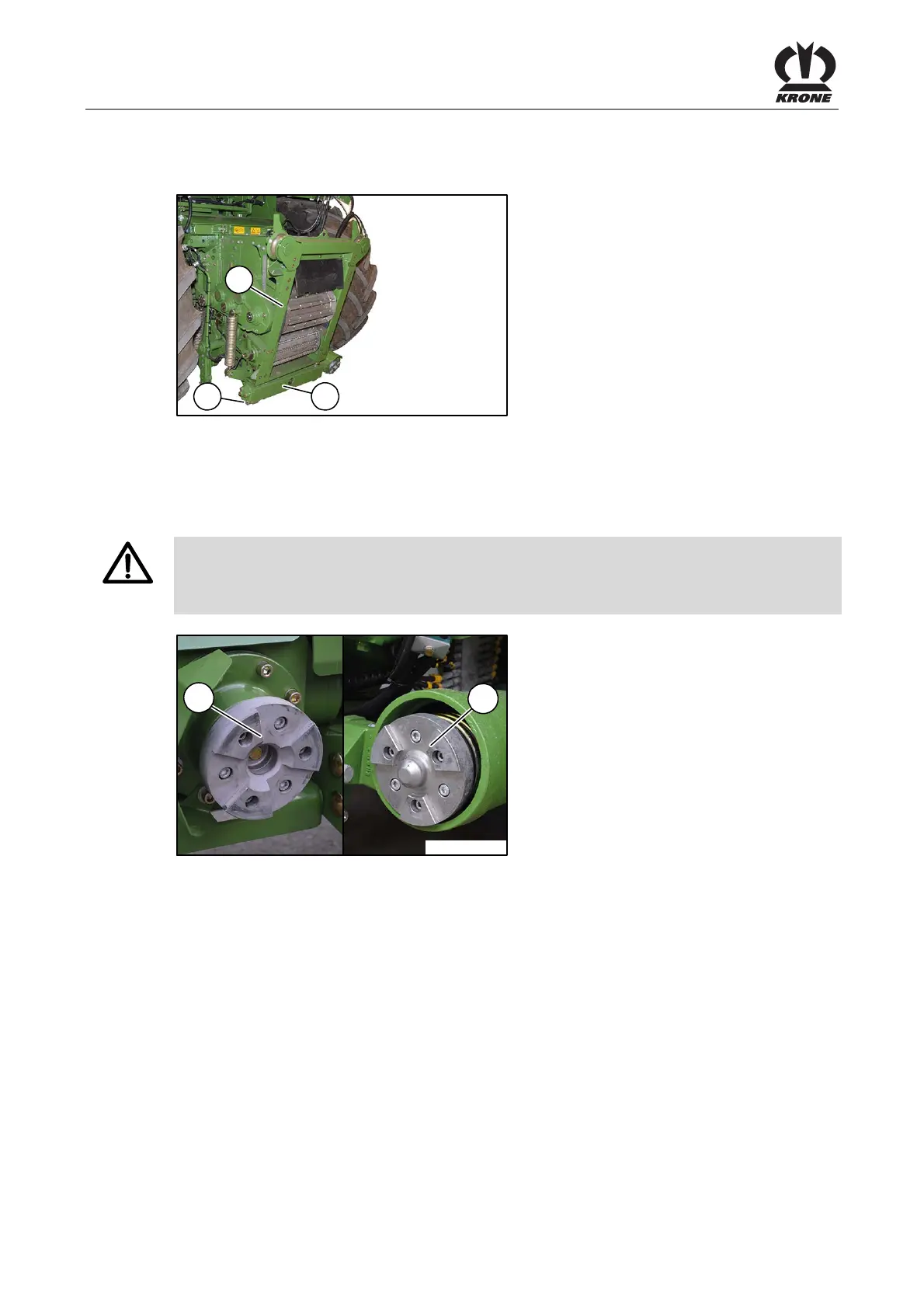 • Clean the coupling journal (2) on the forage harvester and lubricate the coupling surfaces