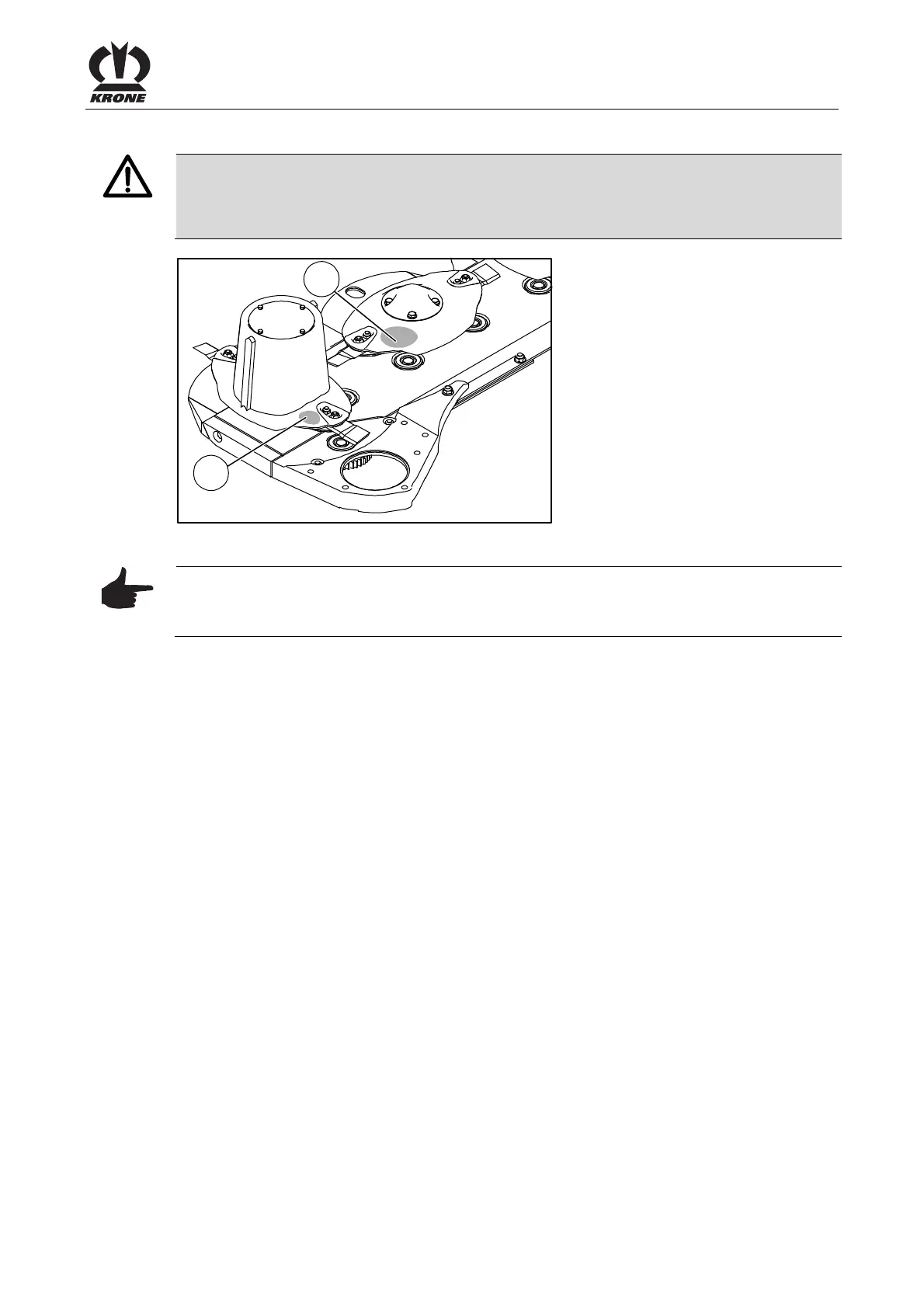If cutting discs or blade drums show deformations or wear in form of abrasions (2) or similar,