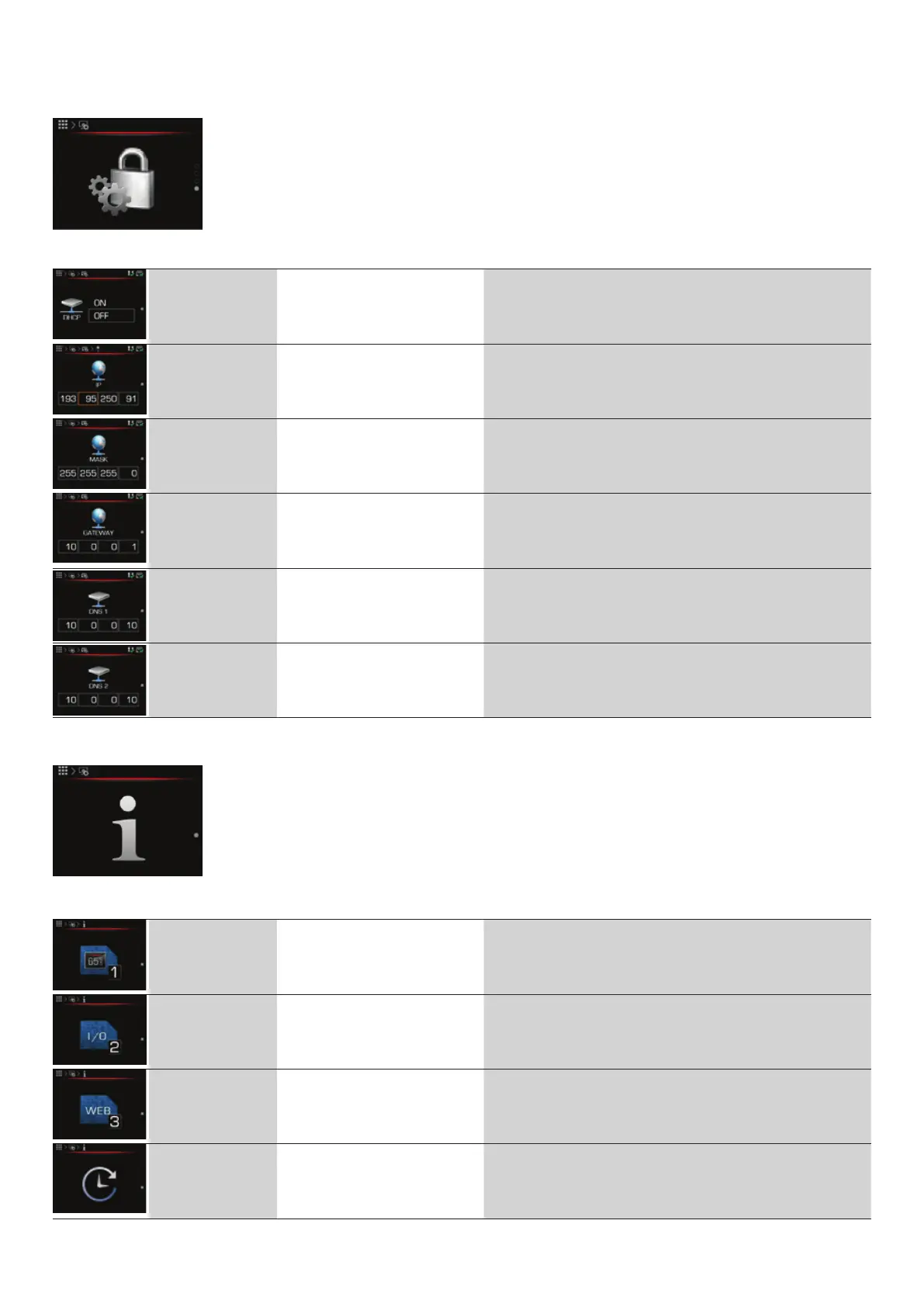 Kronoterm KT-2A - 6.12.1 NETWORK SETTINGS; DHCP Configuration; IP Address Configuration; Subnet Mask Configuration