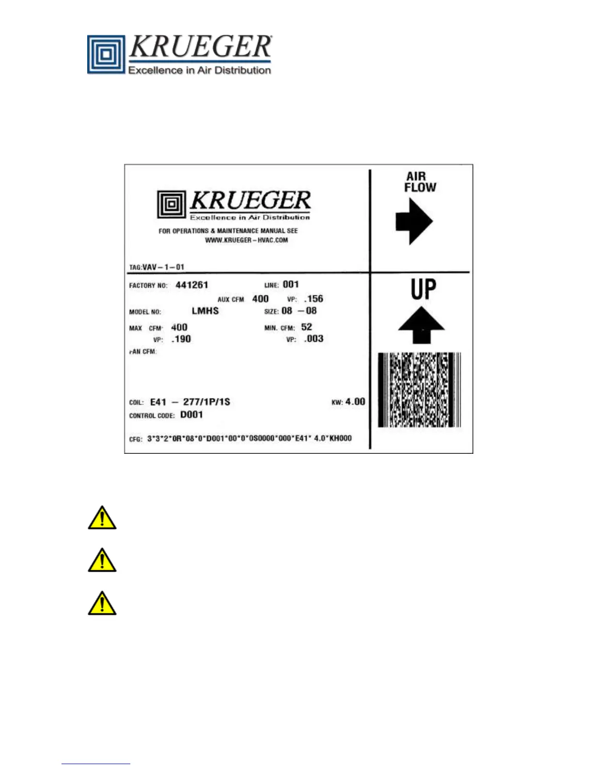Each unit is supplied with a shipping label and an identification label. The following Figure 2 is an