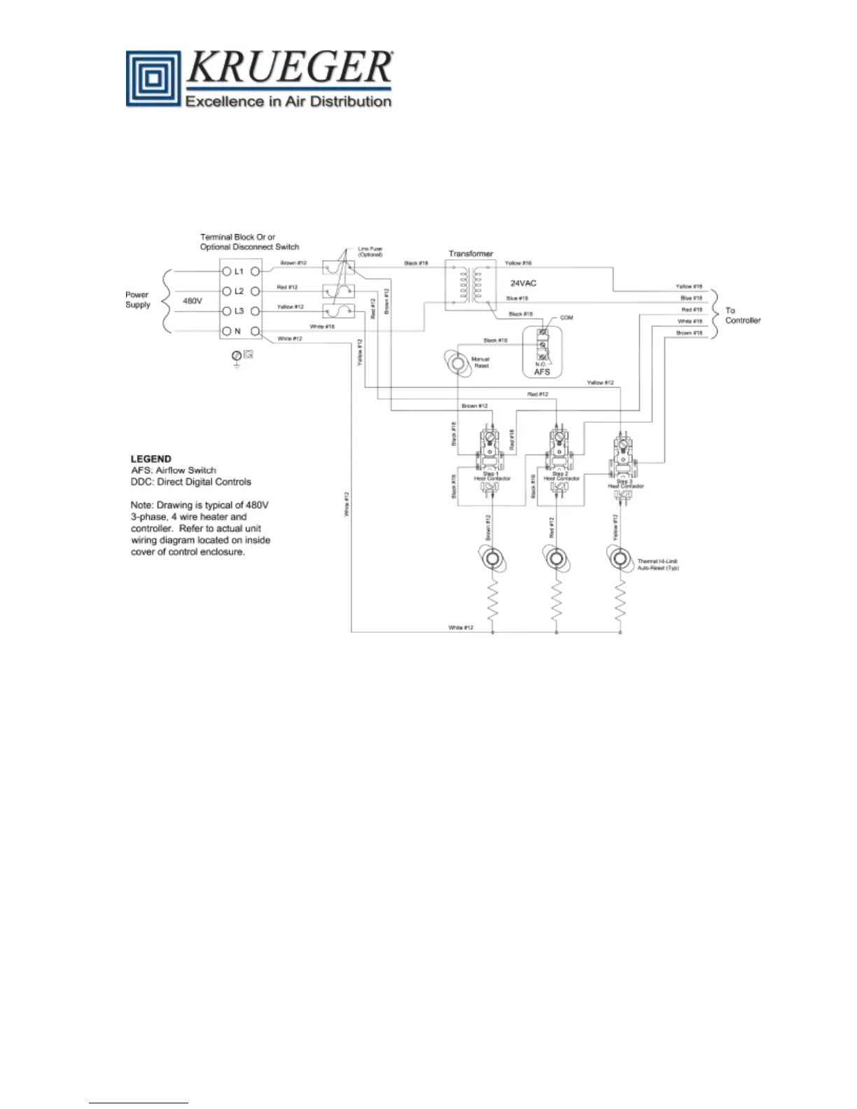 heater control box. All unit power is supplied through this connection. Models with electric heat are