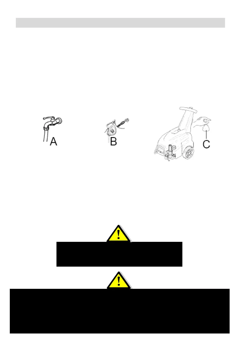 1. Abrir el grifo del agua (A).