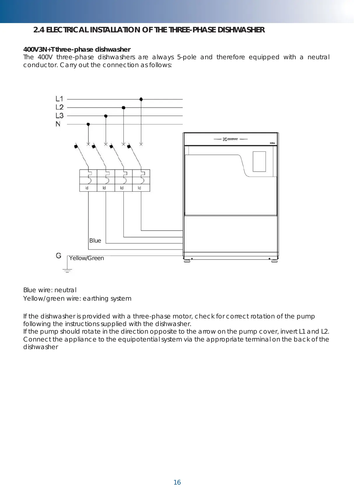 2.4 ELECTRICAL INSTALLATION OF THE THREE-PHASE DISHWASHER