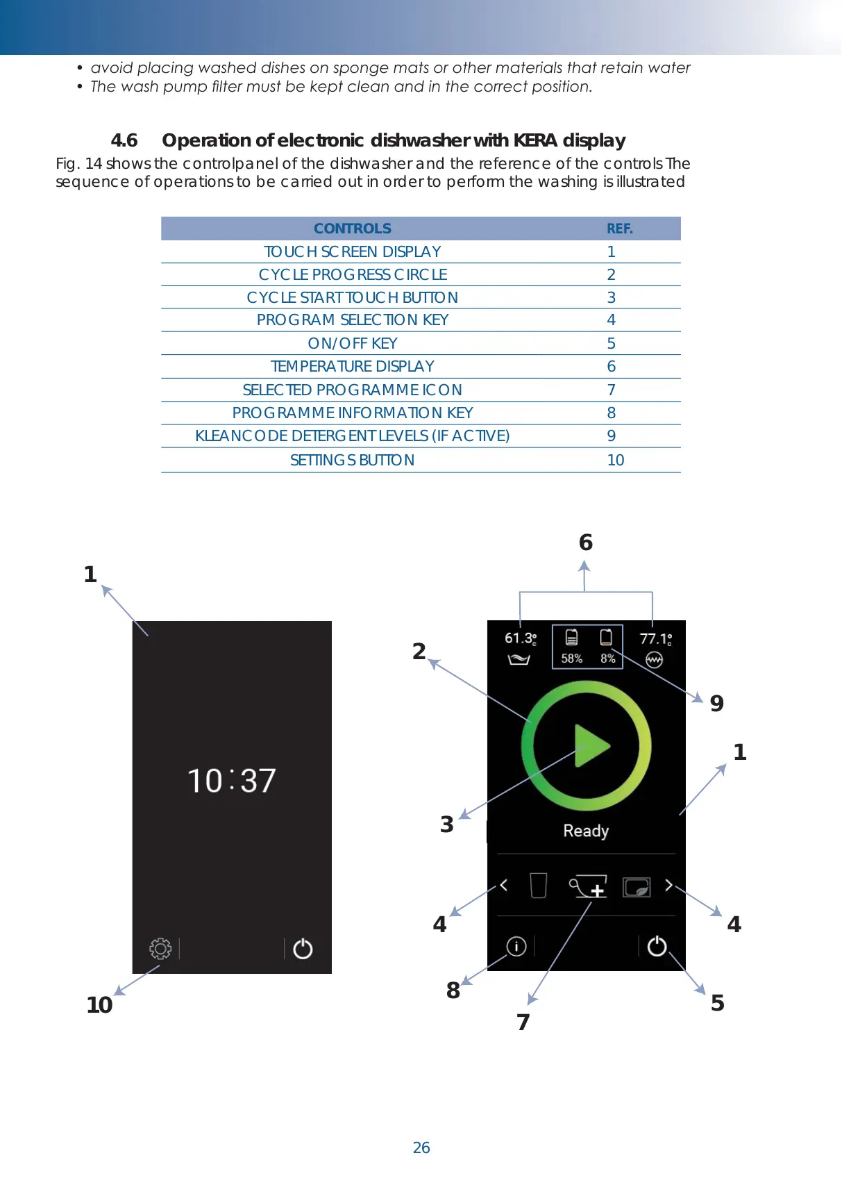 4.6 Operation of electronic dishwasher with KERA display