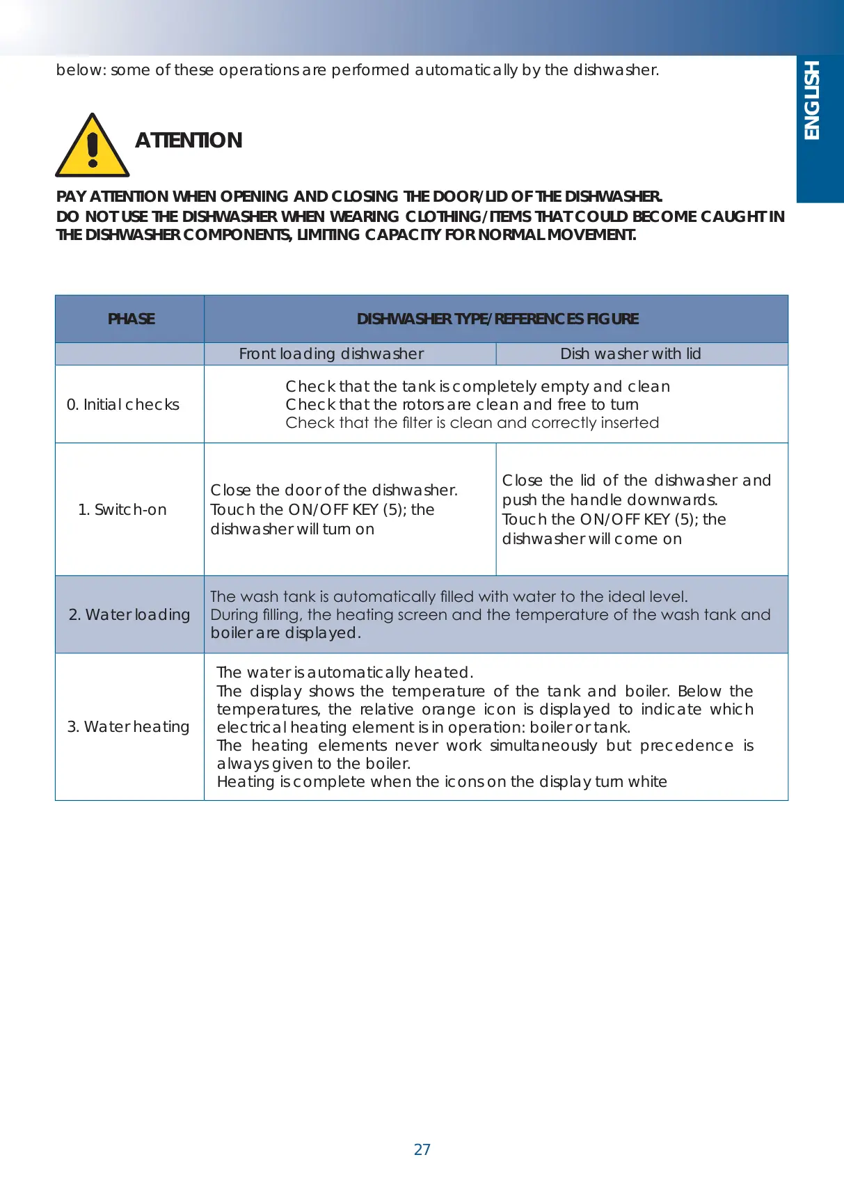 below: some of these operations are performed automatically by the dishwasher.