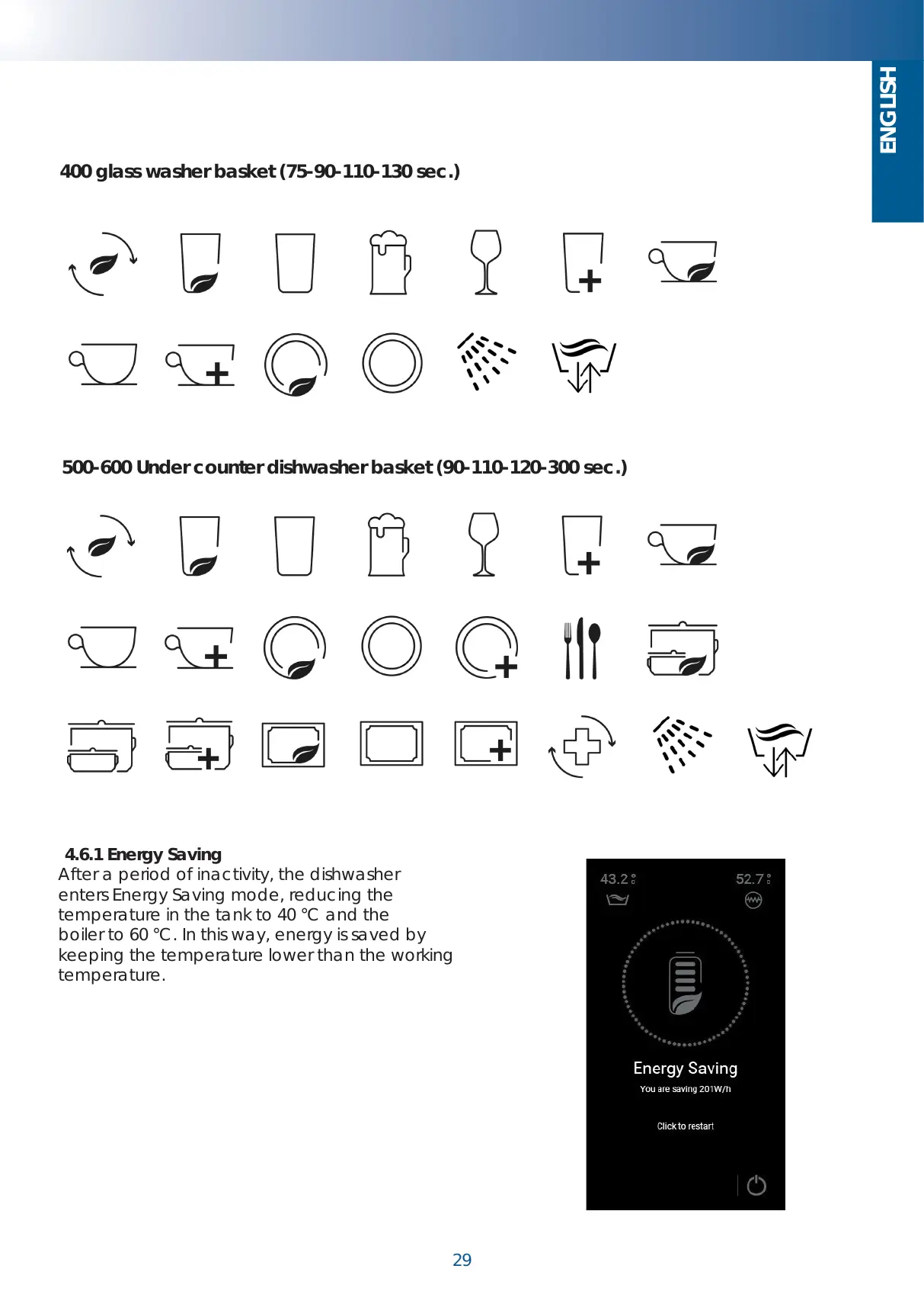 400 glass washer basket (75-90-110-130 sec.)