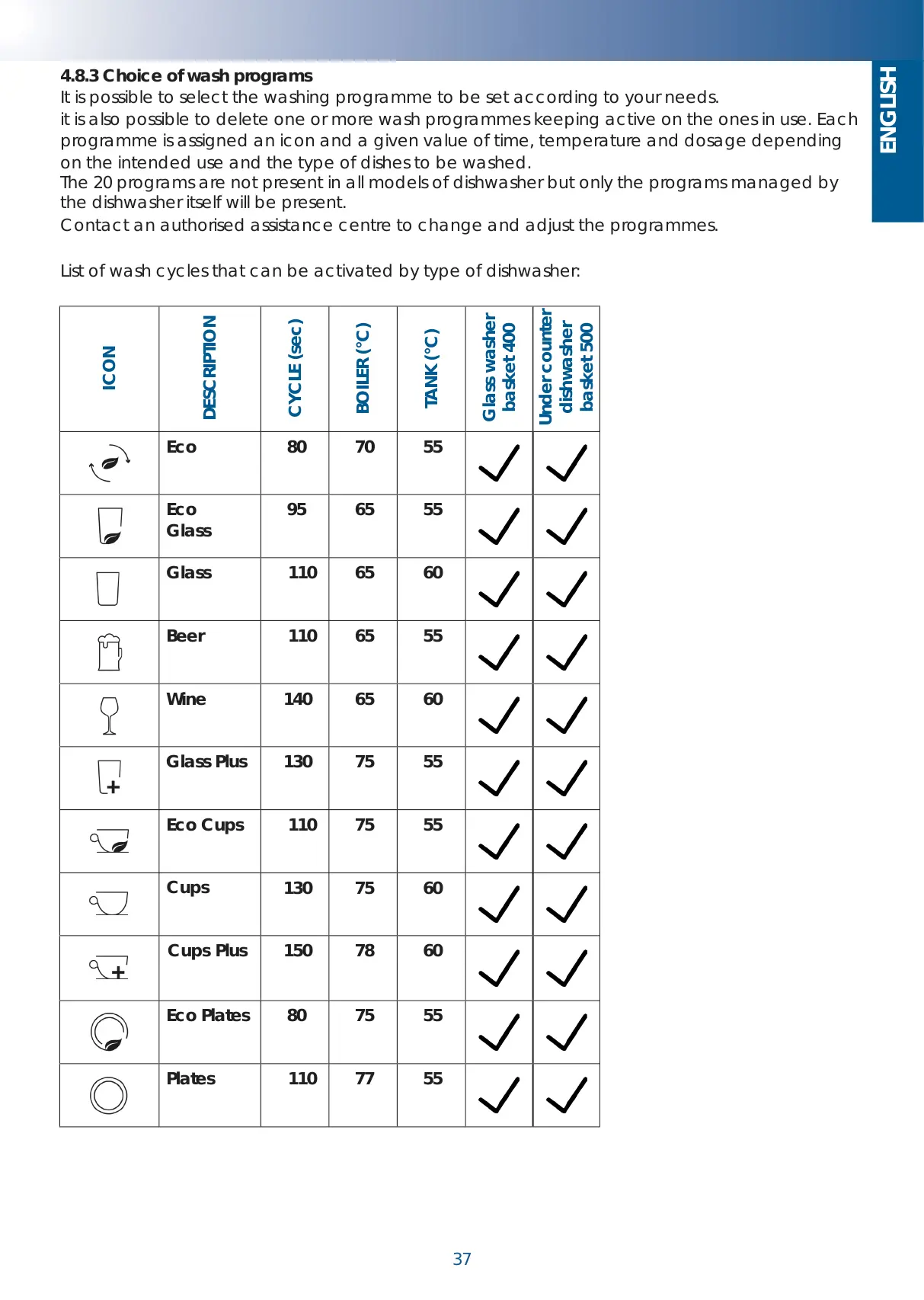 4.8.3 Choice of wash programs