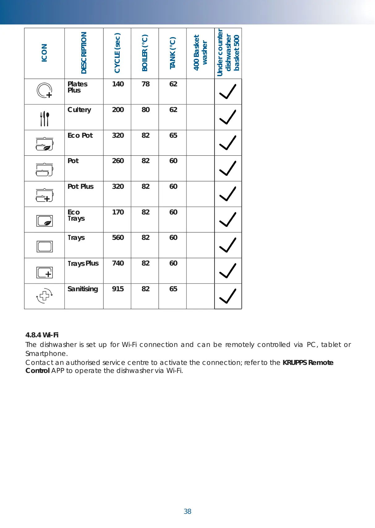 Control APP to operate the dishwasher via Wi-Fi.