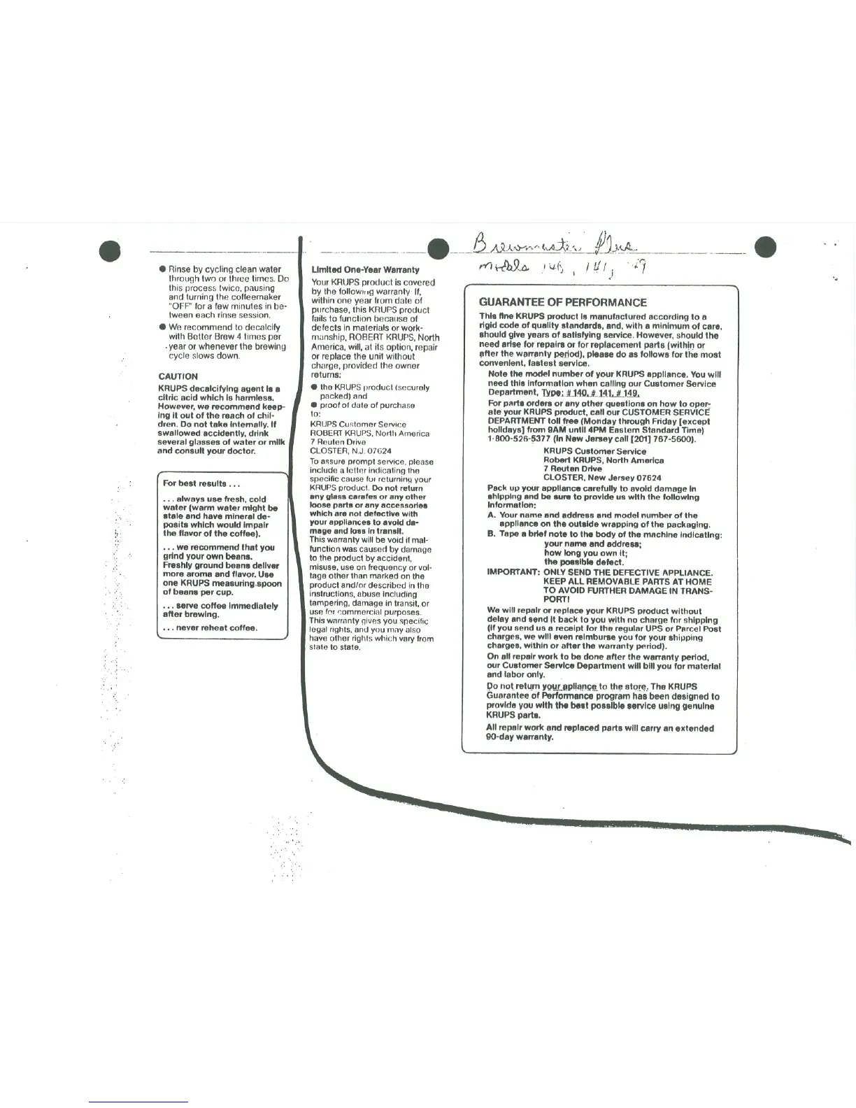 ate your KRUPS product, call our CUSTOMER SERVICE