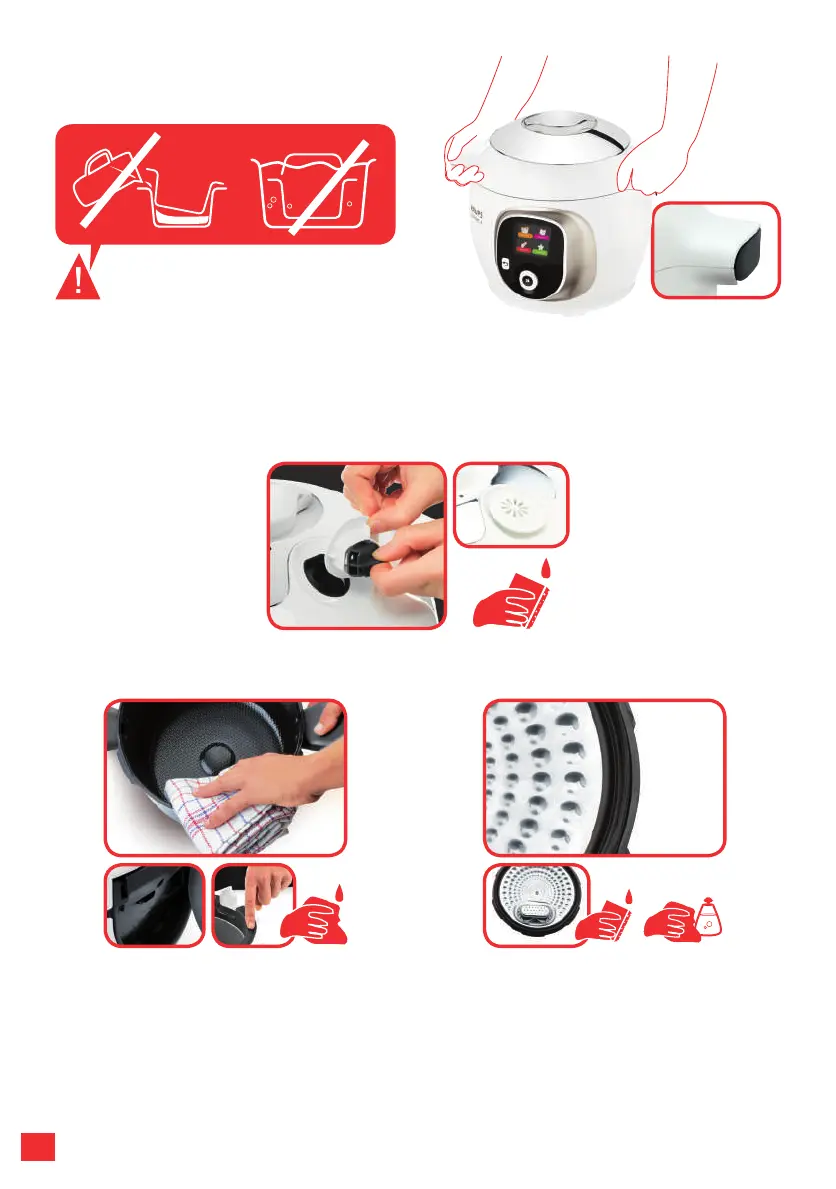 Kochbehälters mit einem feuchten Tuch.