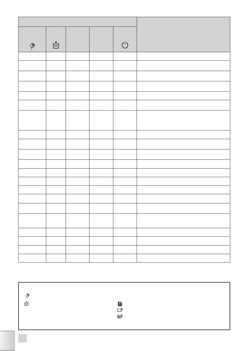 Ürítse ki a kávézacc gyűjtőt, a csepptálcát és a kávétárolót; az ellenőrzőlámpa égve marad, ha a kávézacc gyűjtő