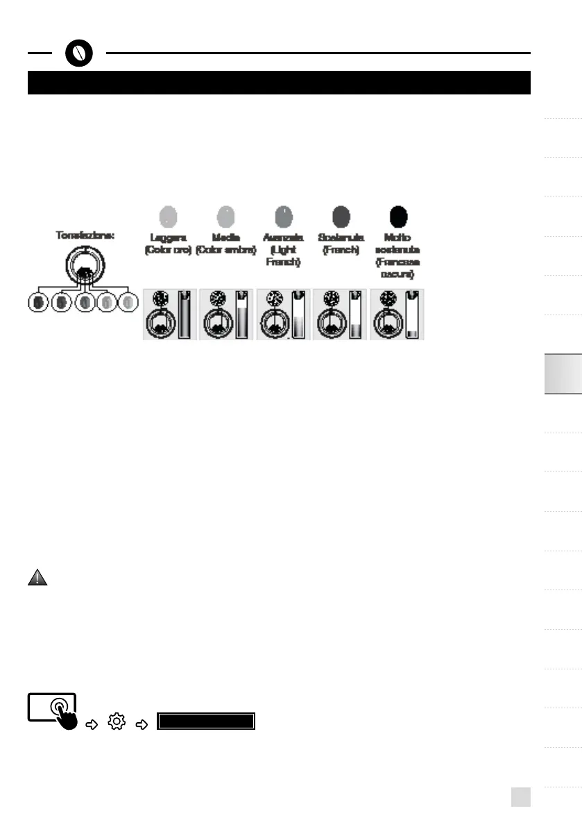seconda del tipo di chicco e dell'intensità di aroma desiderata. Questa regolazione deve essere eseguita quando il