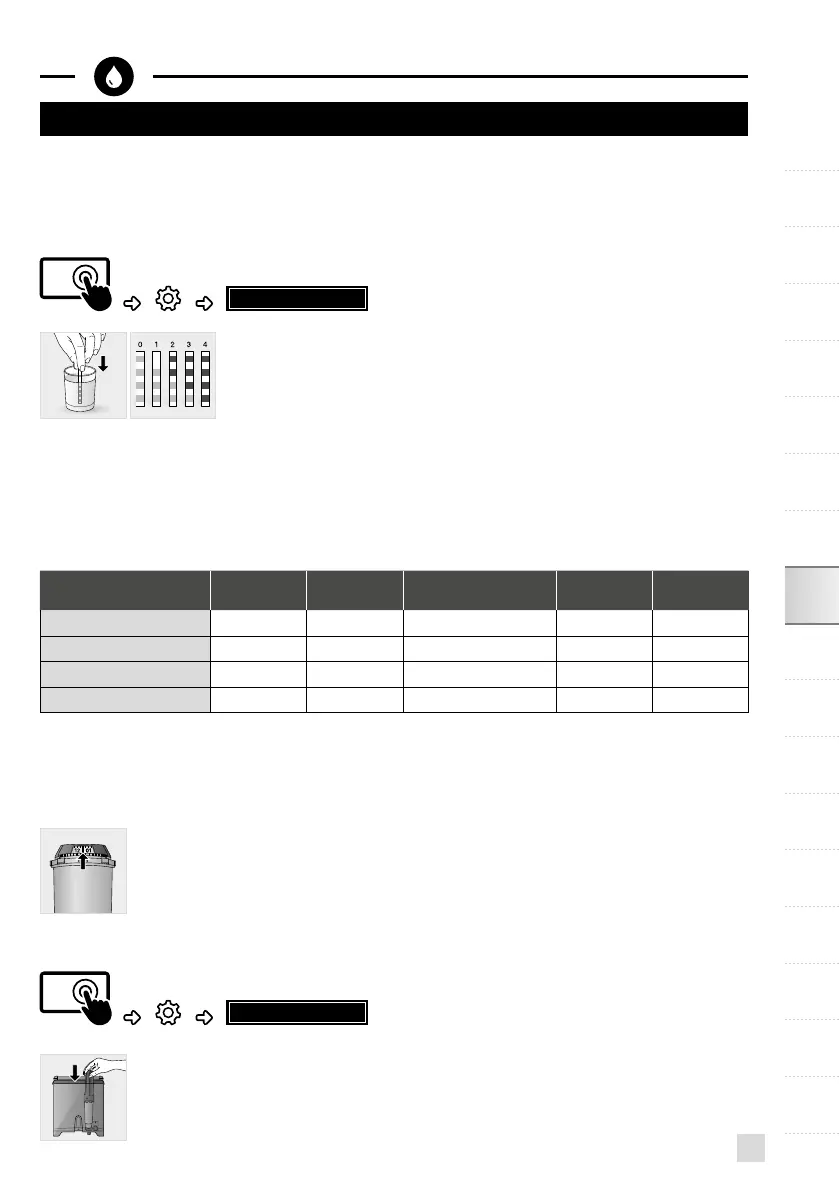 Mergulhe a tira de determinação da dureza da água (8) fornecida com a máquina no