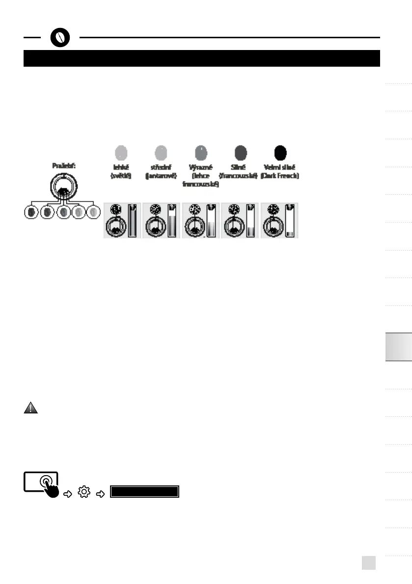 apožadované intenzity aromatu. Toto nastavení je nutné provést, když je spuštěný mlýnek, ato po jednotlivých vyznačených