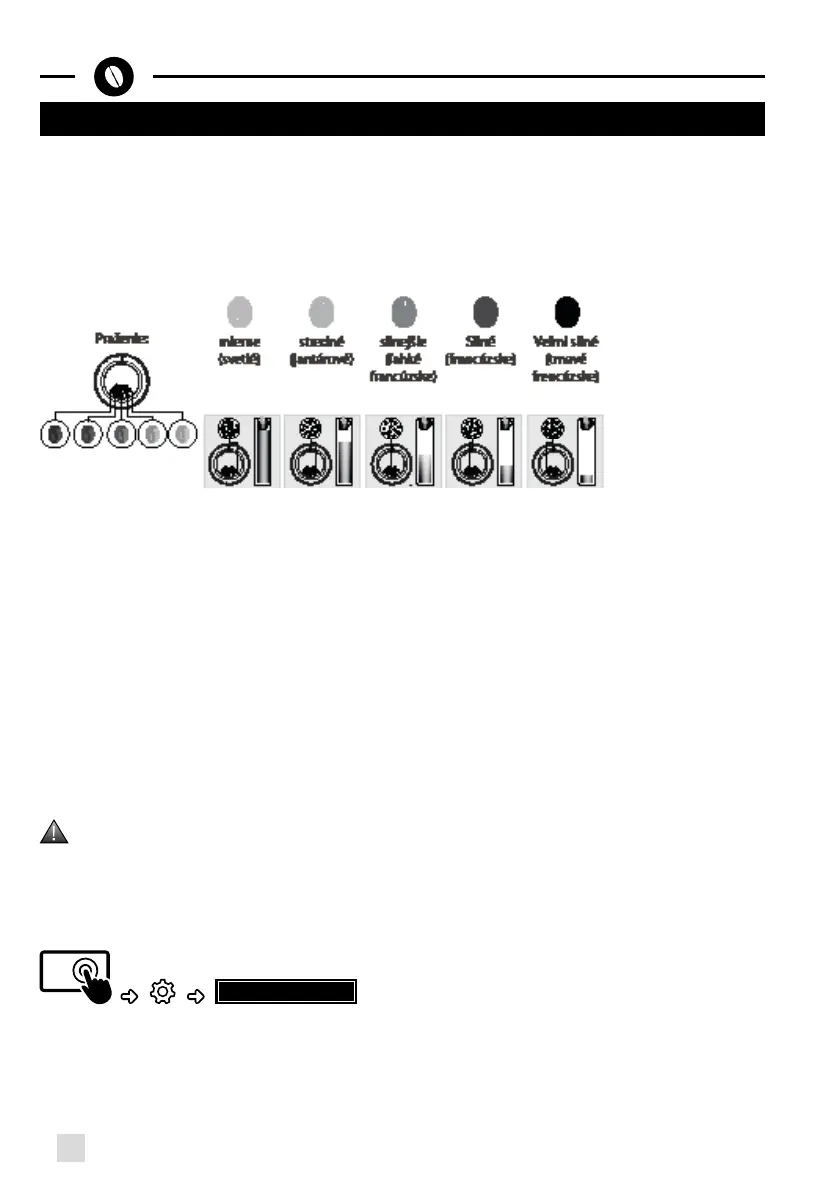požadovanej intenzity arómy. Toto nastavenie je nutné vykonať, keď je mlynček spustený, postupným posúvaním zárezov. Po