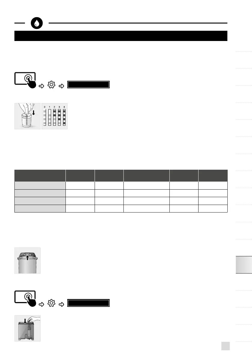 . W menu „Twardość wody” naciśnij odpowiednią liczbę w zakresie od 0 do 4.
