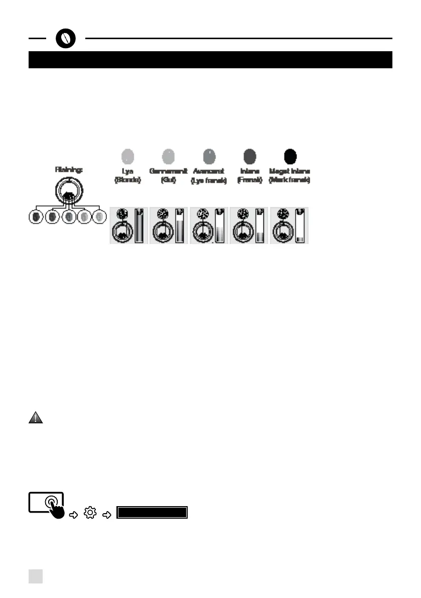 ønskede aromastyrke. Denne justering skal udføres, mens kværnen er i brug, og foregår trinvist. Efter tilberedning af tre drikke