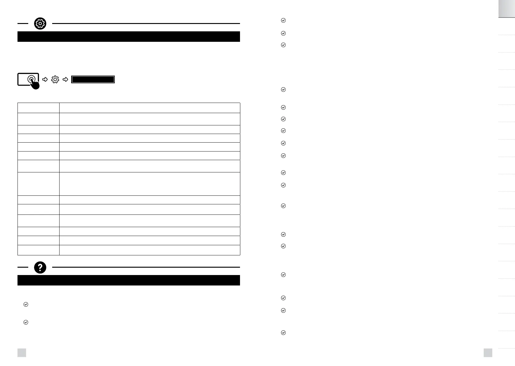 LISTE DES RÉGLAGES :