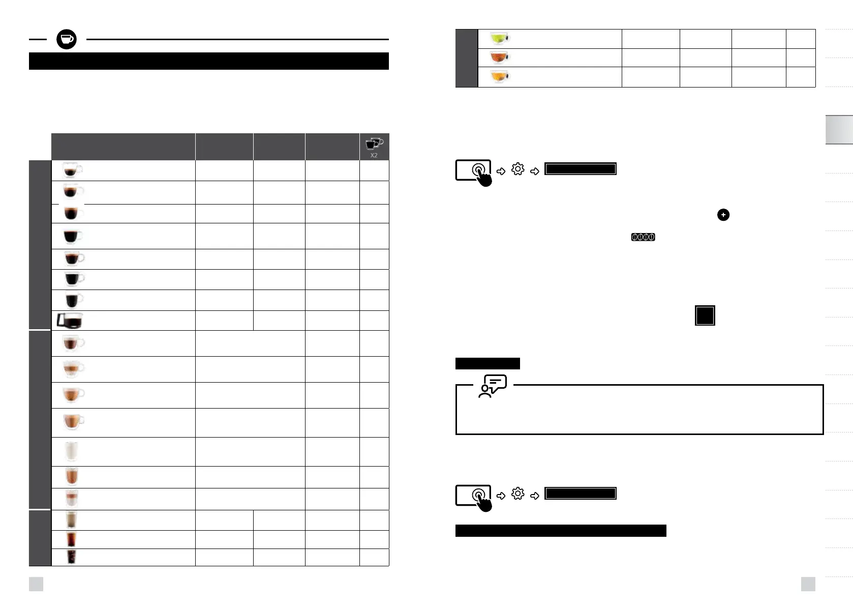 For ere oplysninger, se tabellen over drikke i folderen og LYNVEJLEDNINGEN, DRIKINDSTILLINGER
