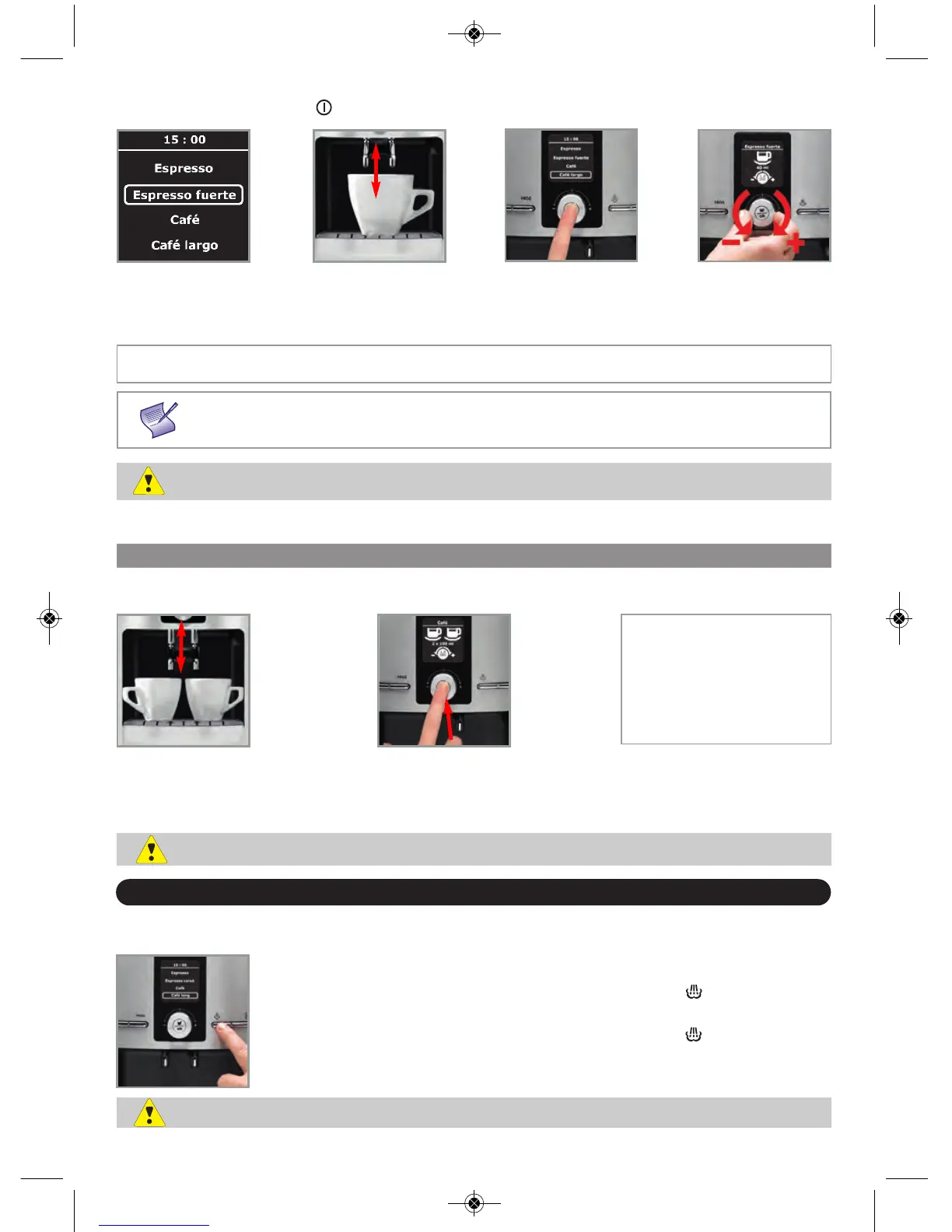 precalentamiento, un mensaje le invita a poner un recipiente bajo la boquilla de vapor. Puede