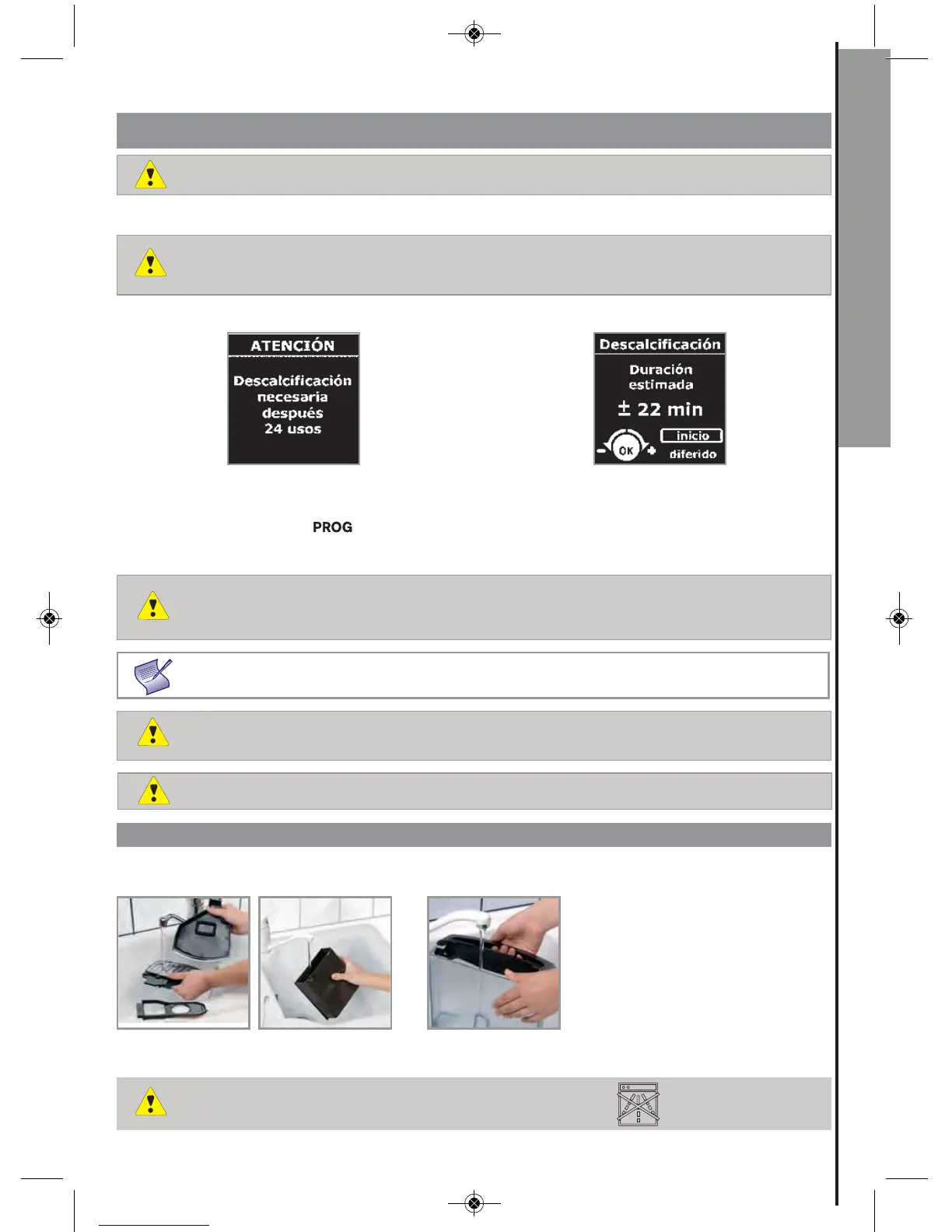 descalcicación, el aparato se lo advierte automáticamente por la visualización de un mensaje de advertencia.