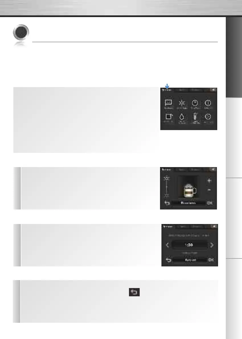 n Go back to the Settings menu by pressing the symbol . Then press the Settings tab to return