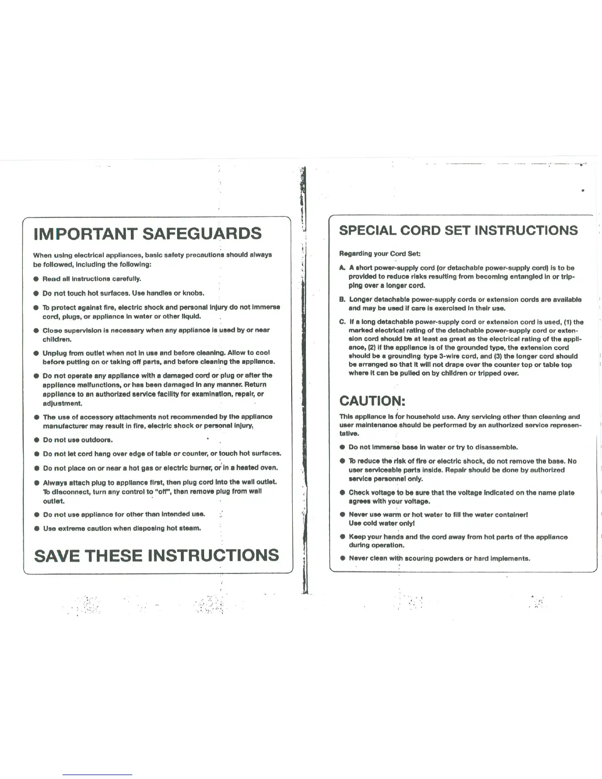 . Keepyourhends end the cord awayfromhot parts of the appliance