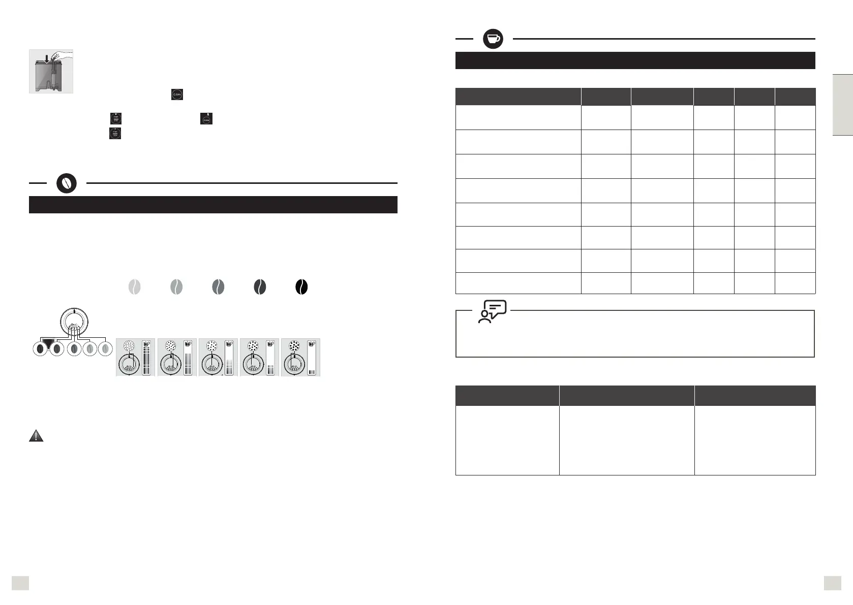 Vigyázat: Nem javasoljuk olyan olajos és karamellizált szemeskávé használatát, amelyet a daráló nehezen dolgoz fel.